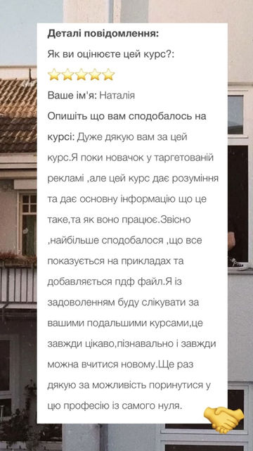 1. Як буде проходити навчання 📚 2. Основи Таргету 🎯 3. Що необхідно від таргетолога 🤓 4. Створення Бізнес Сторінки 📄 5. Створення Рекламного Кабінету 🖥️ 6. Як та коли відбувається оплата 💸 7. Створення Business Manager 🛠️ 8. Аналіз аудиторії, сайту та конкурентів 🔍 9. Креативи, що продають 🎨 10. Приклади ефективних хуків 💡 11. Де створювати дизайни 🖼️ 12. Де створювати відео 🎥 13. Як написати класний текст ✍️ 14. Структура рекламної кампанії 🚀 15. Яку ціль кампанії обрати 🎯 16. Таргет на холодну аудиторію ❄️ 17. Запускаємо рекламу 🚀 18. Бенефіціар та платник 💰 19. Таргет на теплу аудиторію 🔥 21. Lookalike аудиторія 👥 21. Як збільшувати бюджет💰 22. Як розрахувати ROI, ROMI 📈 23. Найкращі місця розміщення📱 24. Створення оголошень 📝 25. Що таке UTM-мітки 🔗 26. Запускаємо оголошеня 💸 27. Джерела реклами в оголошеннях 🛍️ 28. Якісні Facebook Лід-форми 📋 29. Створюємо Facebook Лід-форми ✨ 30. Реклама на Повідомлення 📩 31. Створюємо рекламу на Повідомлення 🛠️ 32. Реклама для Продажів на сайті 🛒 33. Як налаштувати Піксель 📊 34. Налаштовуємо події на сайті 🌐 35. Продажі Advantage+ 🛍️ 36. Ремаркетинг, Воронки продажів 🔄 37. Тести та А/Б-тести ⚖️ 38. Аналітика та оптимізація 📉 39. Висновок, що найголовніше 🏁